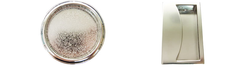 書院広巾襖用の襖引き手。鳳凰が金、蝶が銀に色分けされています。